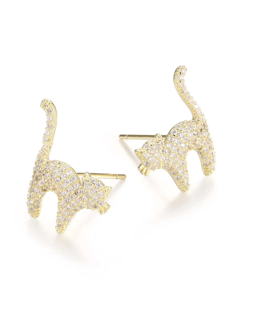 Gold cat stud earrings crafted with a simple cat shaped design made from durable gold plated material suitable for daily and event wear.
