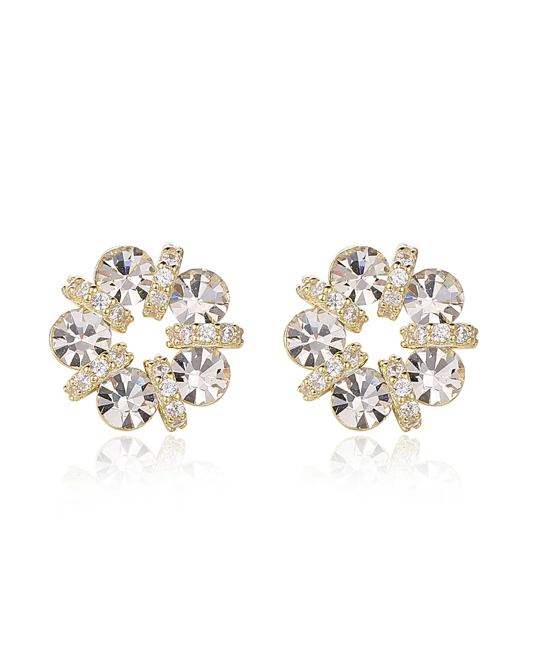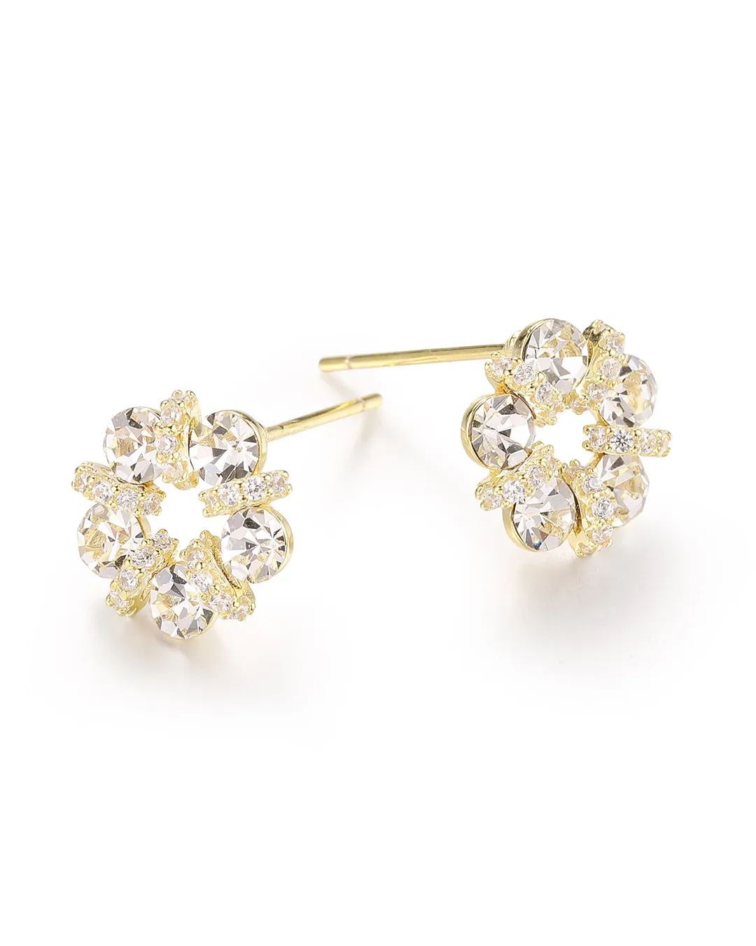 Gold flower crystal earrings are crafted with fine stones placed in a flower pattern. They are made from durable gold plated material with a lasting shine. The lightweight design ensures comfort for daily use and adds a neat touch to any outfit.