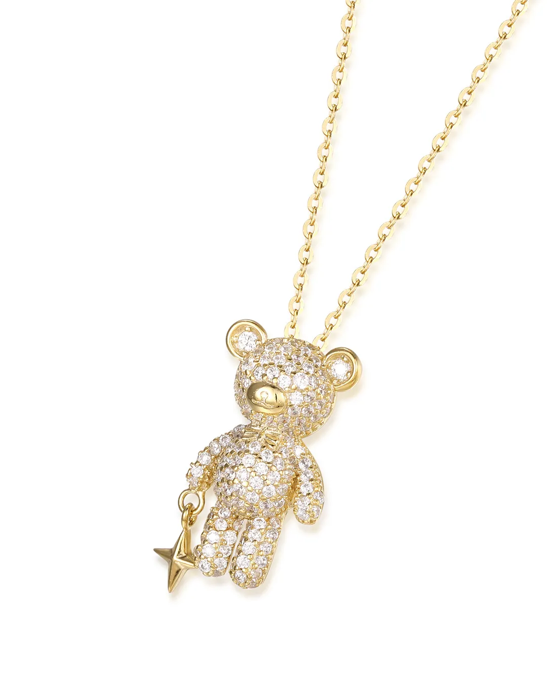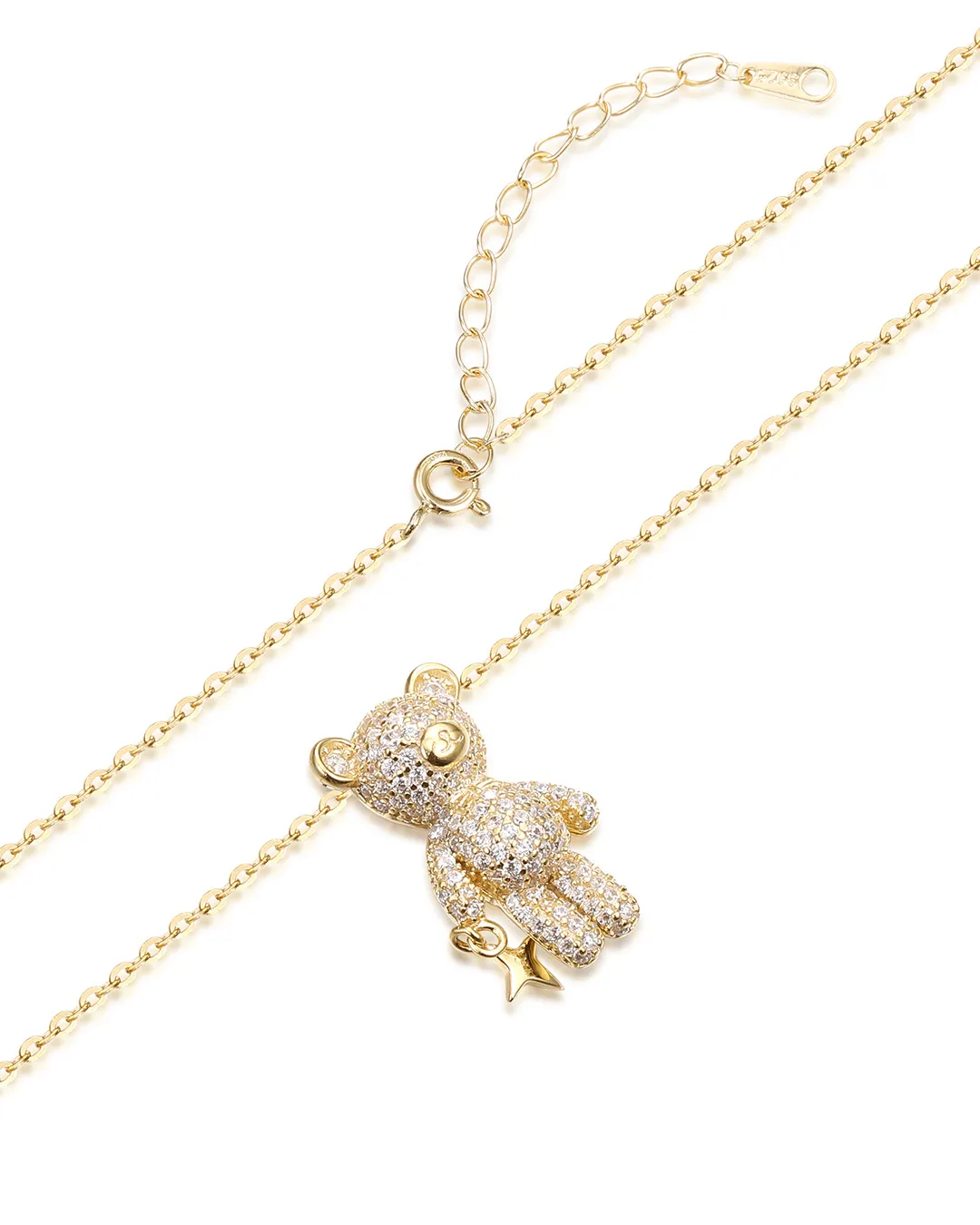 This Gold Teddy Bear Necklace is crafted with love to bring together elegance and a hint of childhood nostalgia. The polished teddy bear pendant rests gracefully on a delicate gold chain giving a sweet and stylish appeal. It is lightweight comfortable and made to shine beautifully with every outfit. The golden finish adds warmth and luxury making it suitable for both daily wear and gifting. A perfect piece for those who adore playful designs with a touch of timeless grace.